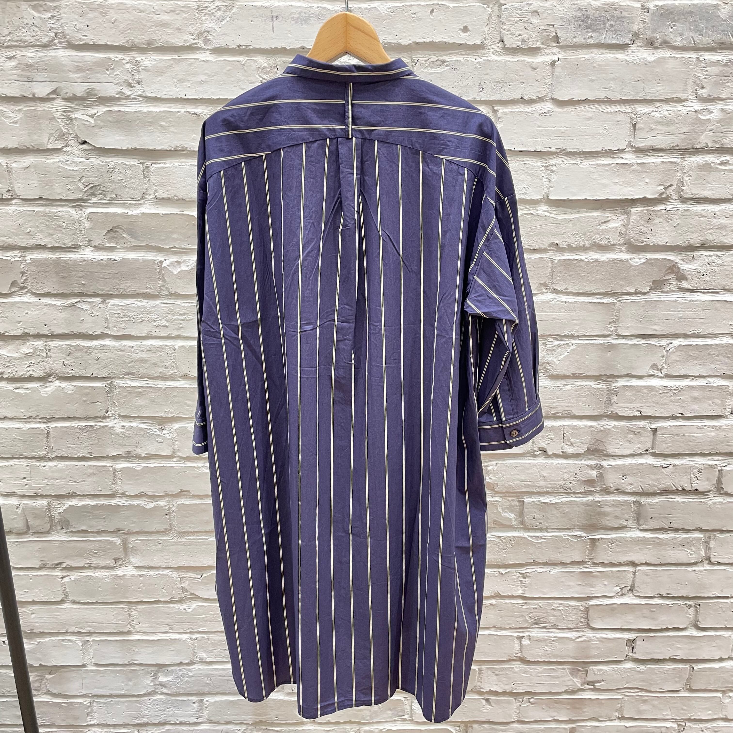 小さめの襟と、前後で着丈の長さが違うところがポイントのチュニックシャツです。